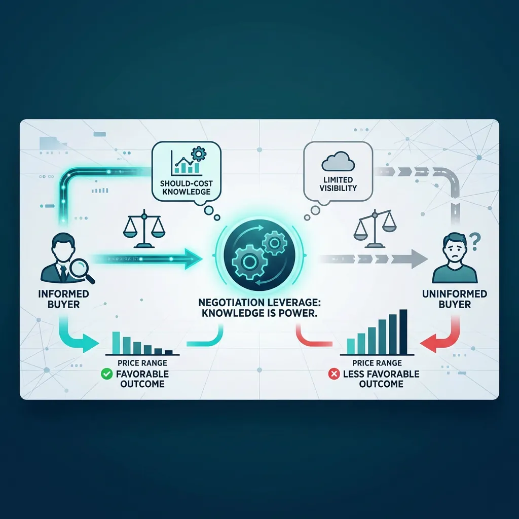 Should-cost analysis builds independent cost estimates before negotiating—shifting power from "take it or leave it" to data-informed negotiation.